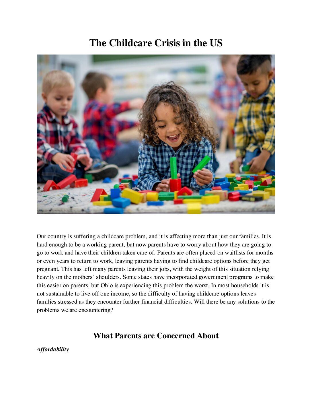 The Childcare Crisis in the US