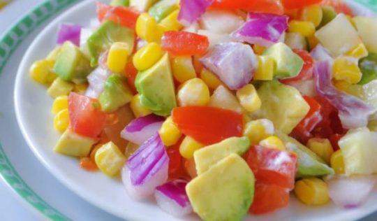 A fresh and tasty summer vegetable recipe with crunchy cool cucumbers, ripe juicy tomatoes, creamy avocados and corn. A nutrition-loaded side dish to any meal.